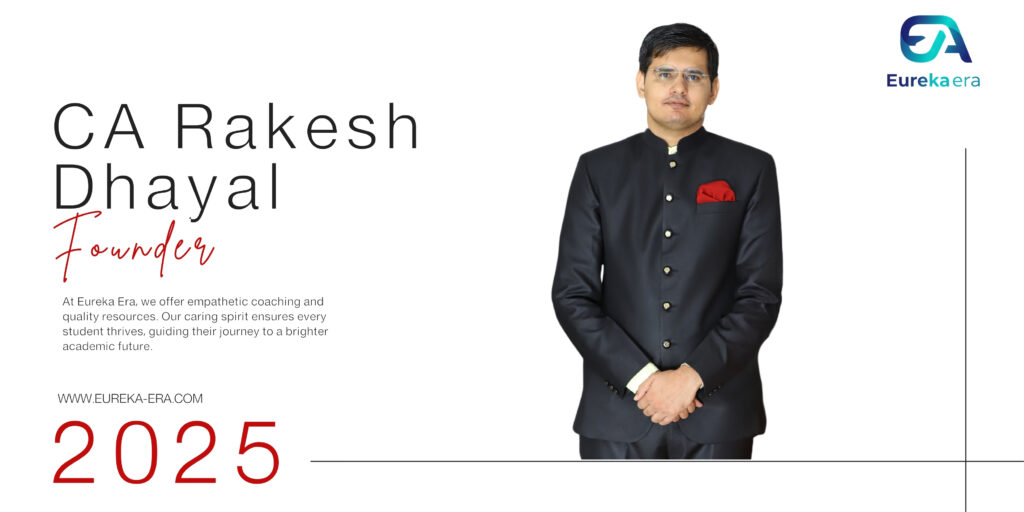 Welcome to Eureka Era, founded by CA Rakesh Dhayal. Rakesh is a dynamic young Chartered Accountant passionately dedicated to making quality education accessible to all who need it. He brings a unique blend of sharp financial acumen and a broad perspective, honed through extensive experience with leading MNCs like NIF and Kiaora Group. His active involvement in numerous industrial associations further strengthens his deep connection to the business world.